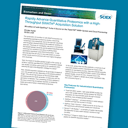 | 高通量微升流速技術(shù)、SWATH 采集技術(shù)和用于快速處理大數(shù)據(jù)的基于SCIEX云計算的 OneOMICS? 軟件。專為生物標記物的發(fā)現(xiàn)與研究提供的全流程解決方案。 | 基于微升流速色譜技術(shù)和可變窗口的SWATH?采集技術(shù)平臺,可以每天快速定量分析超過幾百個樣品。 | SWATH?采集技術(shù),可以用于大型組織生物樣本庫的大規(guī)模數(shù)字化。 |