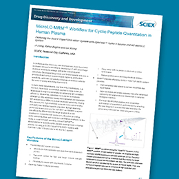 | 基于OptiFlow Turbo V 離子源的微升流速色譜技術(shù)平臺,可以實現(xiàn)環(huán)肽類化合物(cyclic peptide)的高分辨定量(MRMHR)能力。 | 不要復(fù)雜的方法開發(fā),就可以提高選擇性:解析為什么使用高分辨率的MRMHR方法對目標化合物進行定量的策略更靈活。 | 基于OptiFlow Turbo V 離子源和 TripleTOF 6600+ 系統(tǒng),可以識別和表征更多小分子代謝產(chǎn)物。 |
